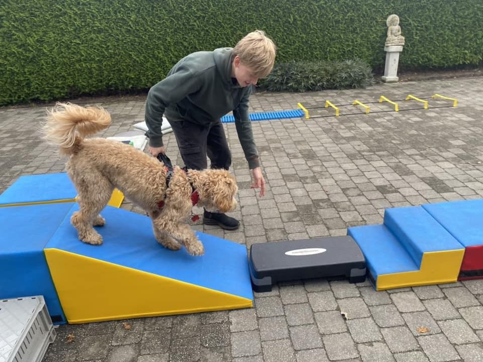 Apenkooien is een leuk en uitdagend parcours voor honden (ook pups). Insteek is socialisatie met vreemde objecten, bewuster worden van het lichaam én samenwerken met het baasje. Voor pups, voor honden die richting pubertijd gaan, er midden in zitten én voor oudere honden die misschien al wat stijfjes worden, is het apenkooi-parcours heel leuk en nuttig. Socialiseren is nooit 'klaar' en socialiseren doe je onder andere met rare objecten waar je op, langs of onder kunt gaan. Ook voor oudere honden die bijvoorbeeld niet meer zo ver kunnen wandelen, is apenkooien heel geschikt. Kom met je hond apenkooien en geef je hond, en jezelf :-) een leuke uitdaging en afwisseling!