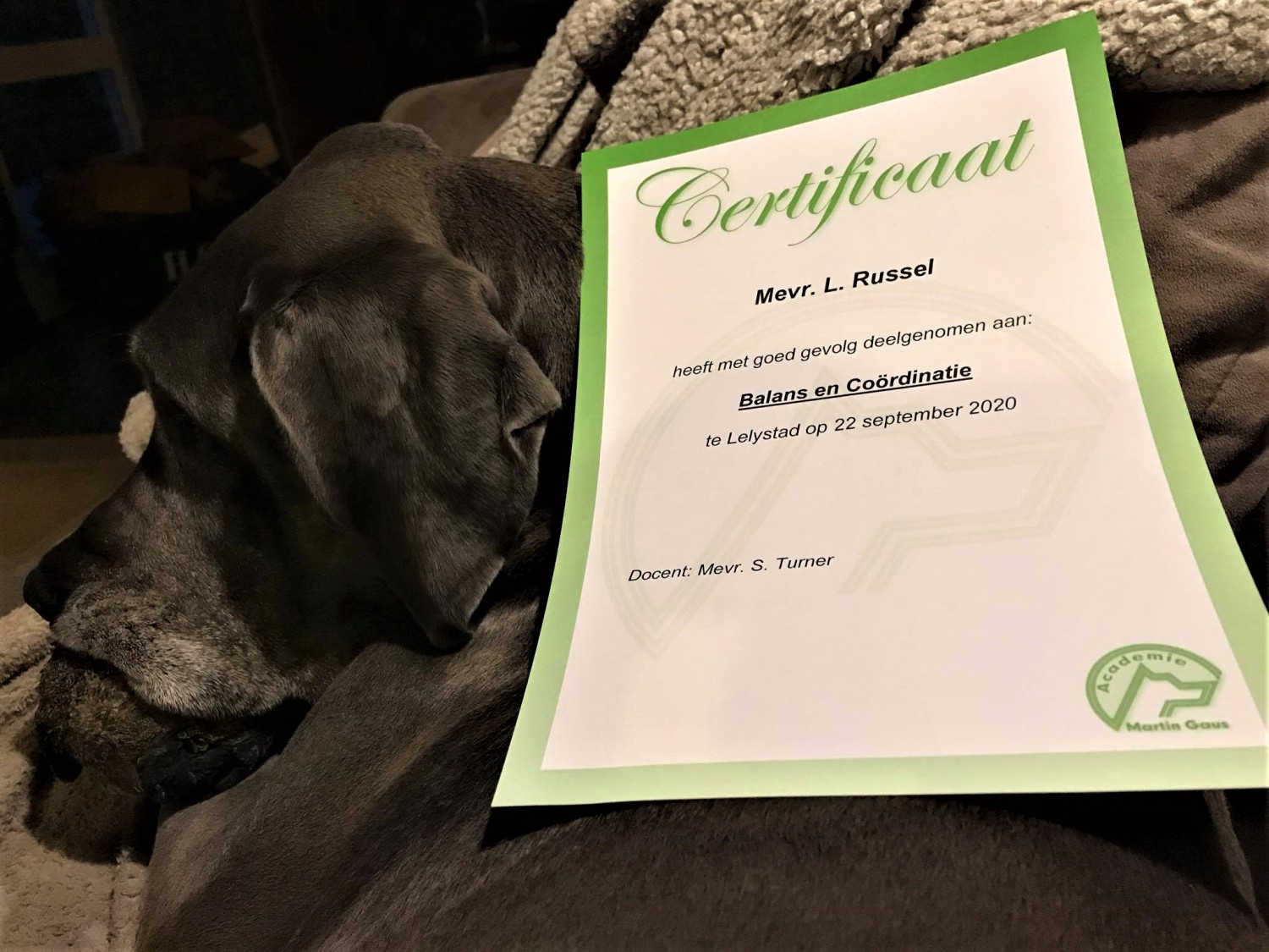 Vandaag heb ik aan een workshop 'balans en coördinatie' deelgenomen op de Martin Gaus Academie. Deze werd gegeven door Sam Turner, etholoog / hondentrainer, gespecialiseerd in onder andere balans en coördinatie.