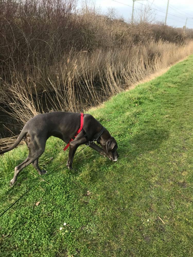 Op zondag hebben we meestal wél een soort routine: een kort rondje zodat DJ haar behoeften kan doen en terug naar huis om dan in de loop van de dag een wandeling van een kilometer of 10 in een (vaak) voor ons nieuw gebied te maken. Alleen vanochtend had DJ haar wandelschoenen al aan en deed haar behoeften en wandelde vervolgens door (en dus niet naar huis). Geen probleem, we hebben ook kortere rondjes dus komt goed. Ze is toch al bijna 7 en dat is voor een dog al best wat dus spaar ik haar een beetje voor de lange wandeling straks. We komen op de kruising en we kunnen rechts, rechts of links, links. Dat mag DJ dan ook nog kiezen haha. No.... ze wil oversteken. Okee... ook goed dacht ik, dan gaan we zo en zo terug. Maar DJ trapte daar niet in en gooide haar bijna 60 kilo in de strijd. Ze staat dan gewoon stil met 'de blik' die we intussen kennen en herkennen. Ik kan je zeggen, 60 kilo sleur je niet zo even mee. Bovendien is het niet mijn intentie mijn hond 'mee te sleuren'. Natuurlijk had ik net een jas aan met nog maar 1 (saai) snoepje. Ik stond in de buurt van verkeerslichten en een grote hond als DJ trekt toch al snel de aandacht dus ja... daar stond ik dan... tralalalala, ik sta hier altijd even met mijn hond naar het verkeer te kijken...... 'DJ, we gaan straks nog lang wandelen dus we gaan nu naar huis'.... niks.... mijn doorzichtige pogingen om te doen alsof we verder gingen en dan toch van richting te veranderen, liepen op niets uit. Uiteindelijk ben ik twee keer op het einde van de leiband gaan staan en heb ik 'hieeeerrrrr' gezegd. Dat doet ze dan wel en vanuit de tweede keer hier heb ik met haar gespeeld en tijdens het spelen heb ik de richting naar huis in kunnen zetten. Toen was alles weer ok en ligt ze nu met een volle buik tevreden naast mij op de zetel om straks een lange wandeling te gaan maken die ik nu via de wandelknooppuntenapp ga uitvogelen. Een tip voor iedereen die eens in een gebied wil wandelen waar je de weg niet kent! Op DJ haar instagram (dj.thegreatdane) post ik regelmatig foto's van de zondagwandelingen dus als je inspiratie nodig hebt.... ;-)