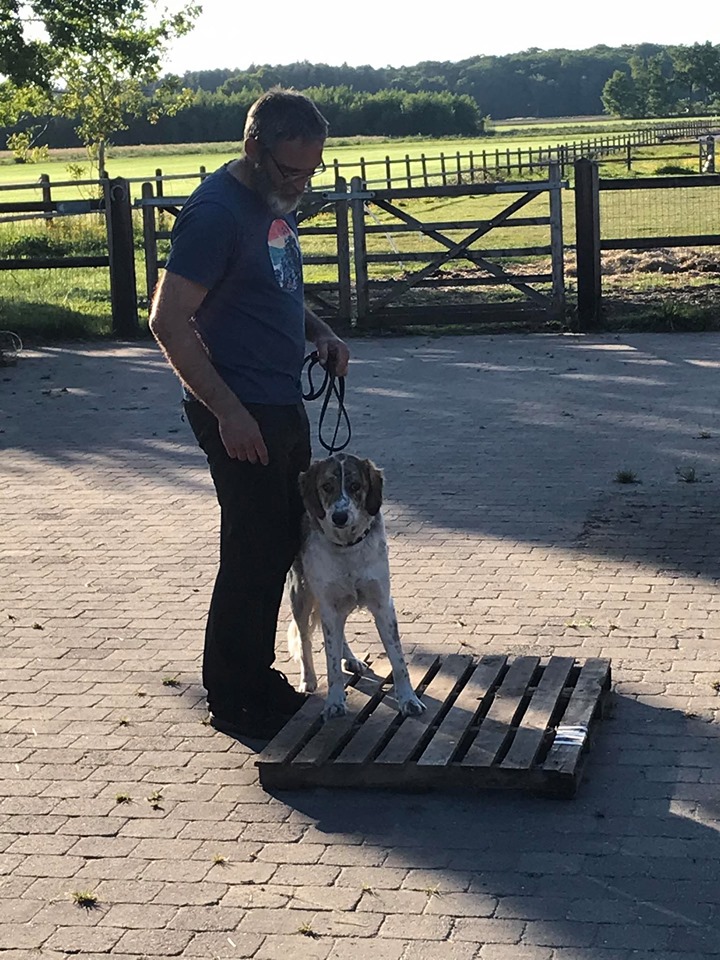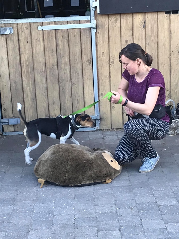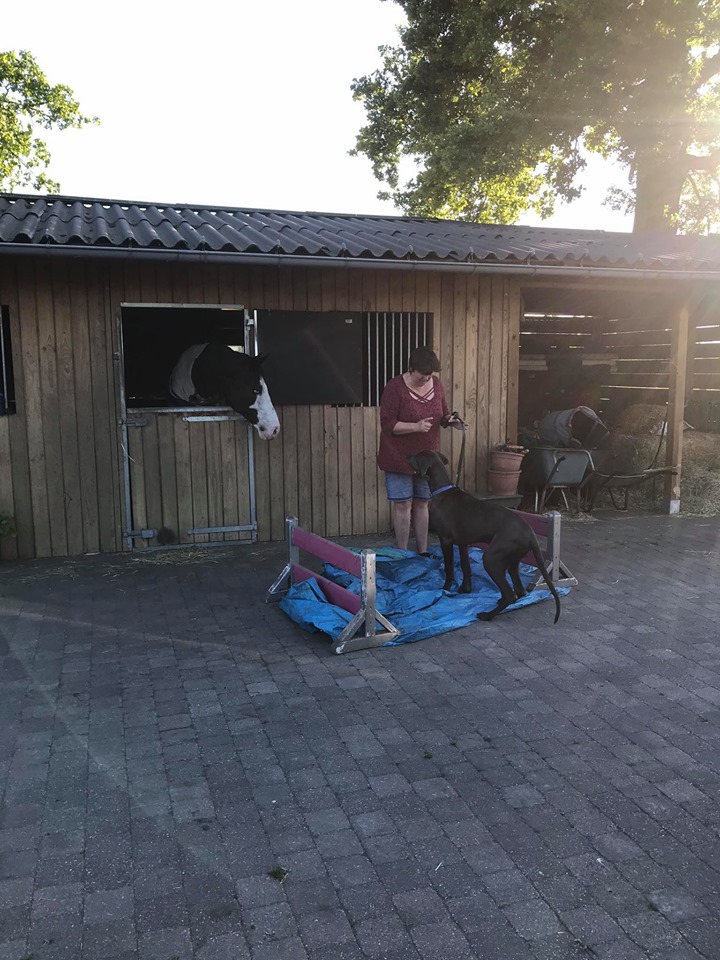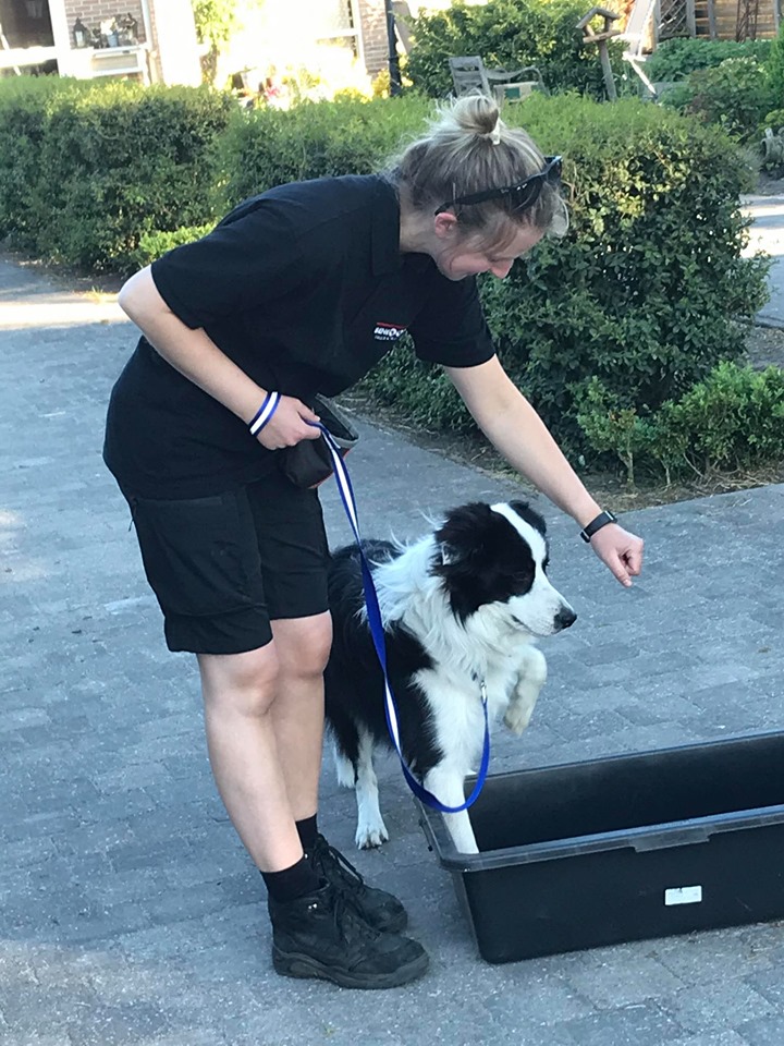 Ook hebben we met objecten getraind (foto's). Hoe gaat een hond om met nieuwe voorwerpen? Sommige vliegen erop af om er in no-time overheen te vliegen, andere honden doen net of het voorwerp niet bestaat en weer andere honden gaan onderzoekend te werk. Samenwerken is de boodschap! En hoe beter jij je hond kent, hoe beter dat dat gaat.