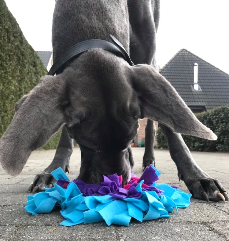 Een snuffelmatje is ook te koop bij Russel's Dog School als u er nog geen heeft.