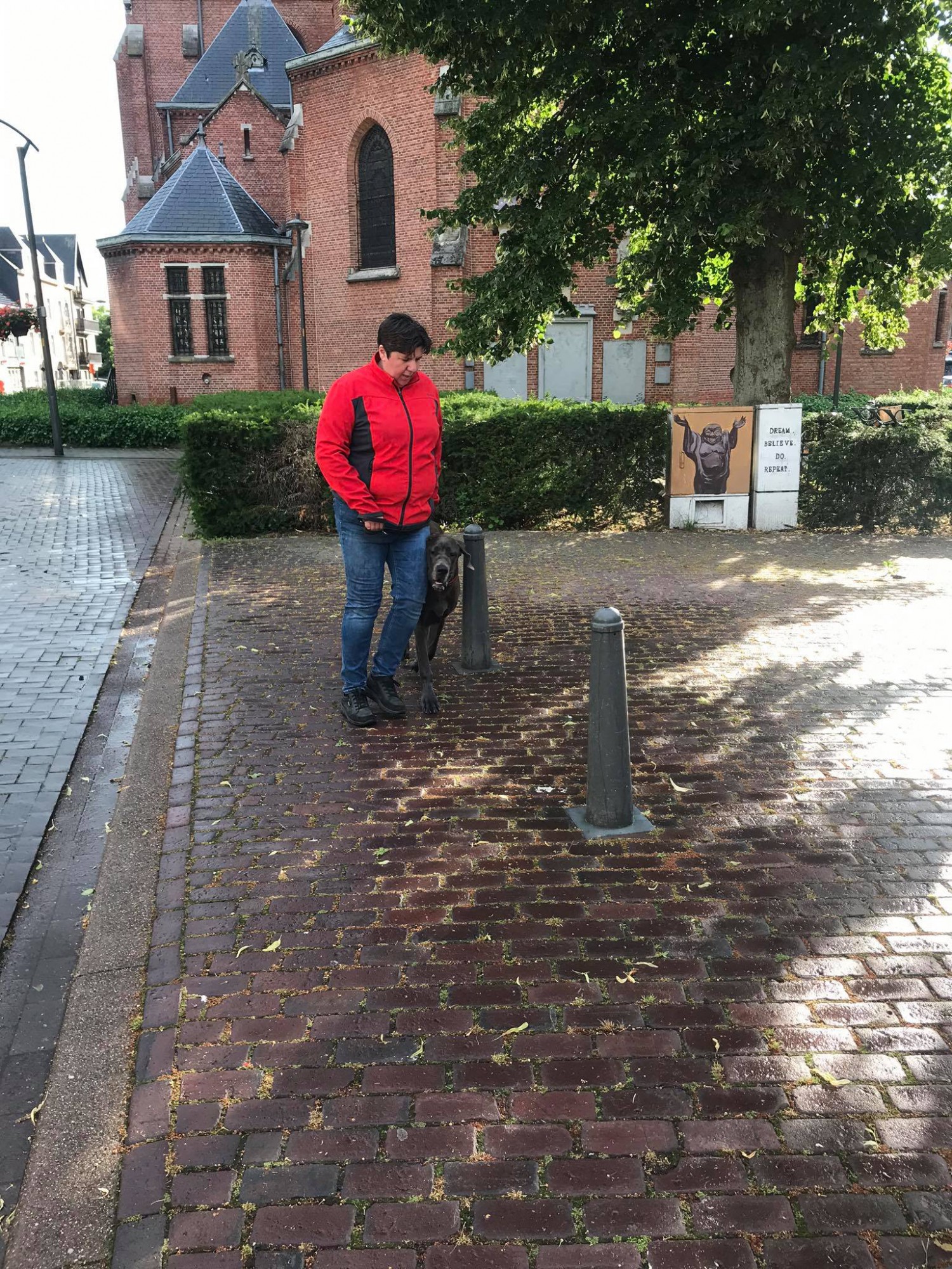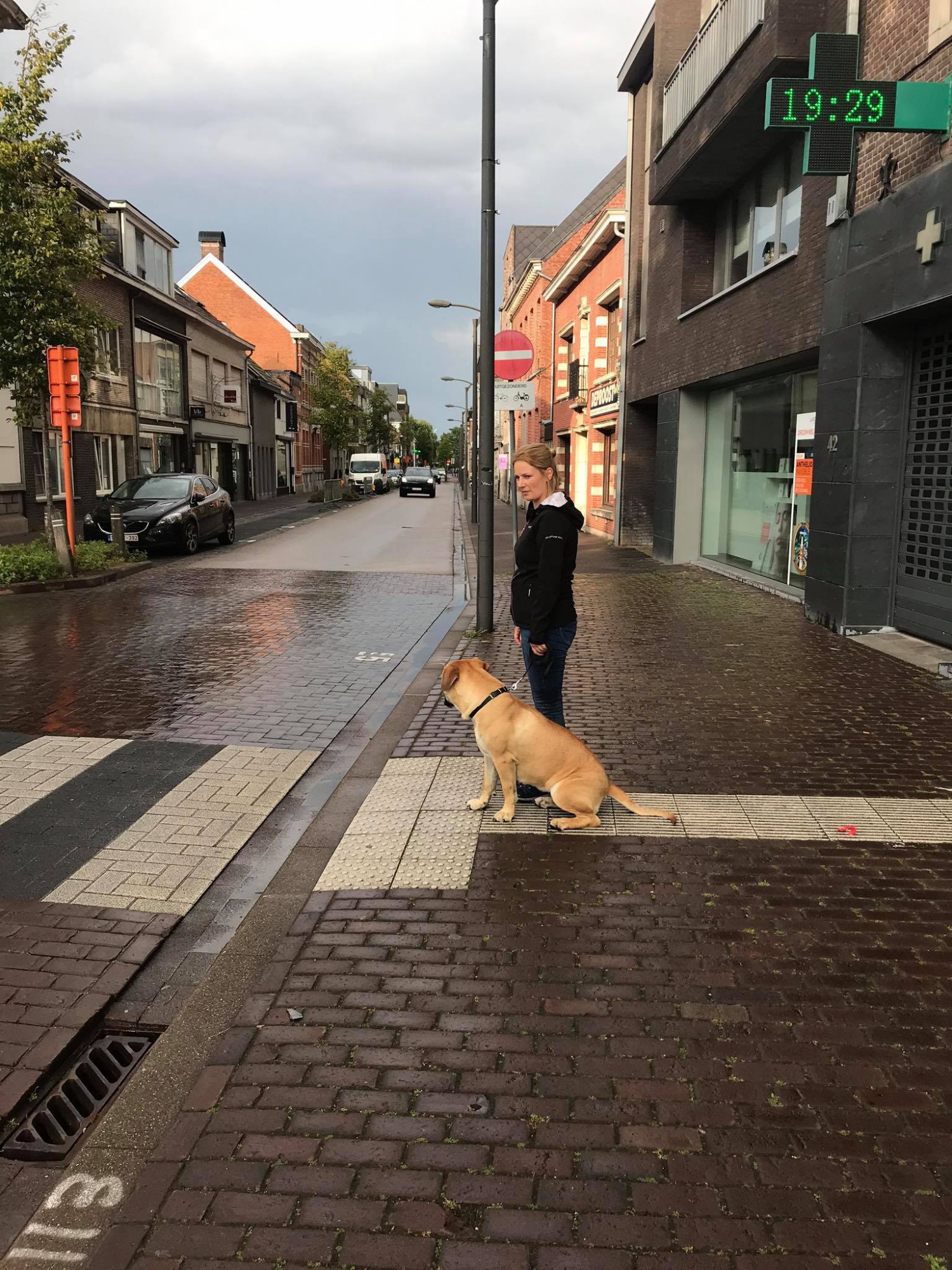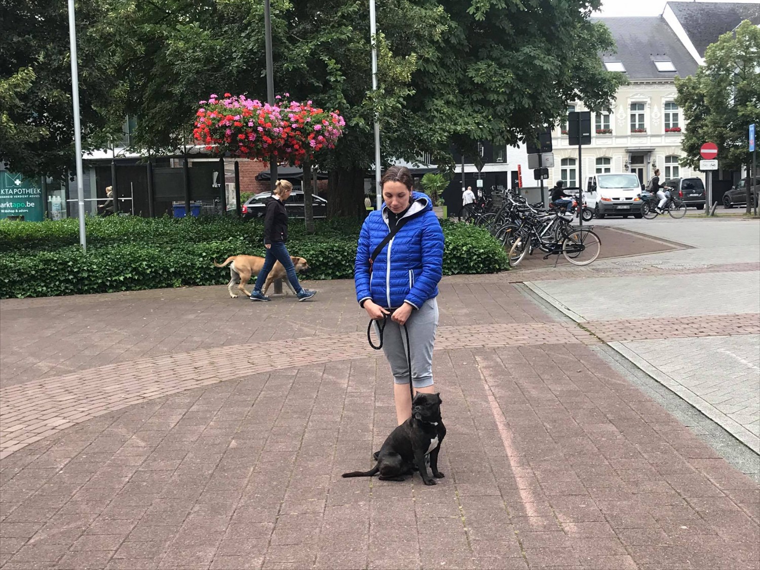 Vanavond gaf ik een socialisatieles in het centrum van Arendonk. Alle deelnemers hadden eerder al minstens 1 socialisatieles gevolgd zodat de toe te passen technieken niet geheel nieuw waren. Wat wel nieuw was, was de omgeving. En... natuurlijk heb je niet in de hand wat er om je heen zal gaan gebeuren. Maar zo is het ook op een dagelijkse wandeling al zochten we vandaag natuurlijk bewust wel iets meer drukte op.