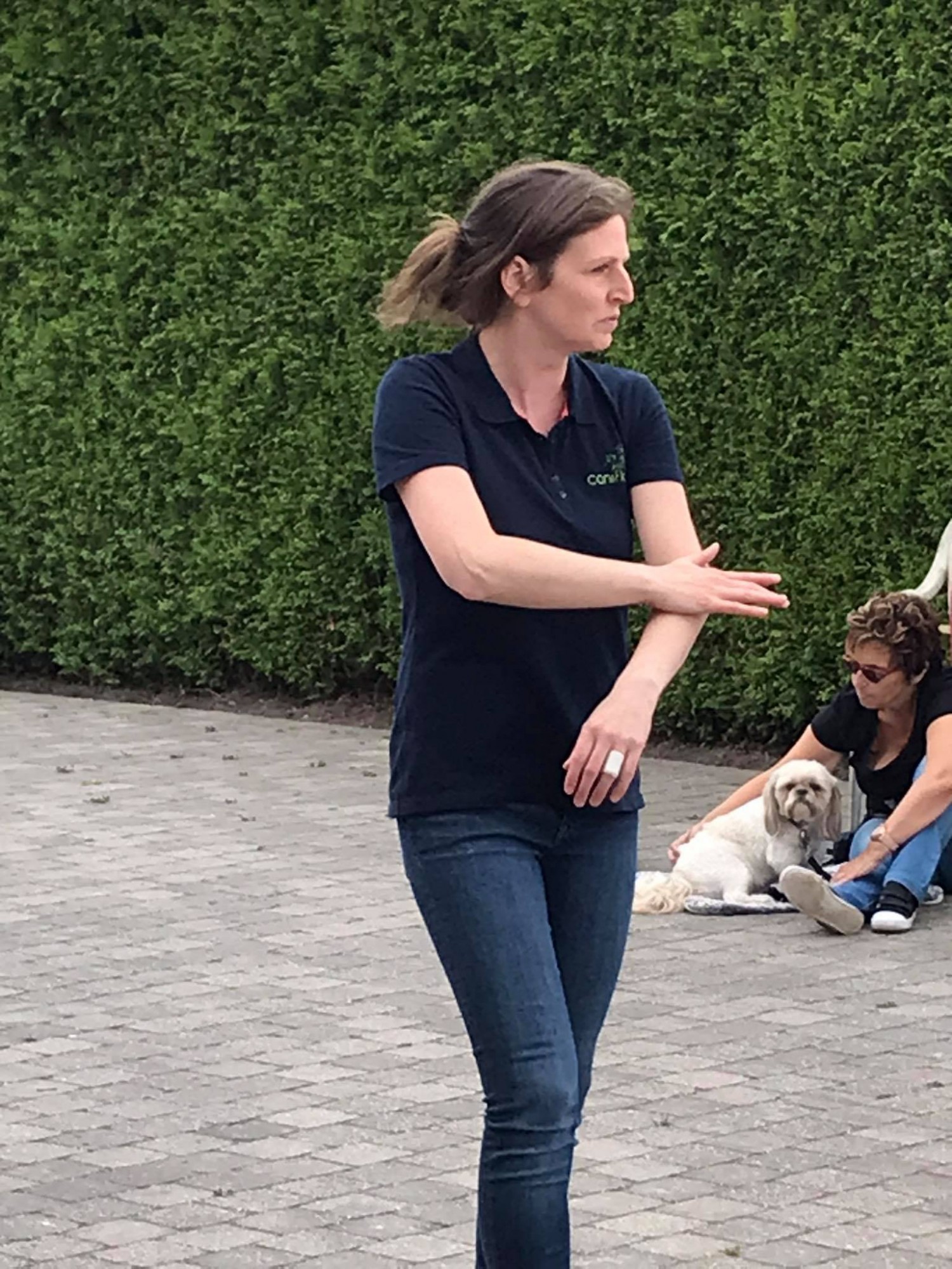 Linda legde de deelnemers diverse technieken uit die ook direct werden geoefend op de honden. Ze leerde de deelnemers zich ook bewust te worden van wat ze voelen: de temperatuur(verschillen), de zacht- of juist hardheid van de spieren, de gelijkheid of ongelijkheid link en rechts. Alle honden werden rustiger, inclusief de meer re-actieve honden. Enkele baasjes merkten op dat ze er zelf ook helemaal 'zen' van werden :-)