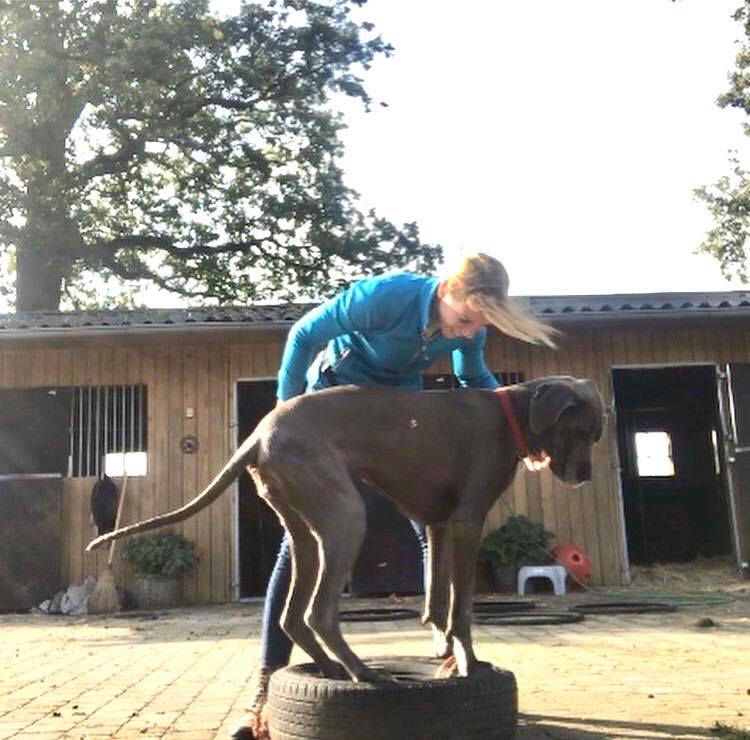 Als ik nu de clicker laat zien en vraag aan haar 'gaan we trainen?' dan springt DJ van de bank. Zelfs rond etenstijd is clickeren belangrijker voor haar dan eten! Waarom? Omdat ze nooit van tevoren weet wat we gaan doen, omdat ze moet nadenken, samenwerken met mij en werken voor een click. Door je norm steeds iets te verhogen, gaat de hond het gewenste gedrag steeds duidelijker laten zien en zo kun je hele leuke oefeningen uitwerken. DJ kan bijvoorbeeld met vier poten balanceren op een autoband, ik kan haar vooruit sturen en dan naar links, rechts of rechtdoor. En zo kun je nog veel meer verzinnen, je bent echt nooit 'klaar' met de clicker. Dat houdt het voor hond en baasje leuk!!